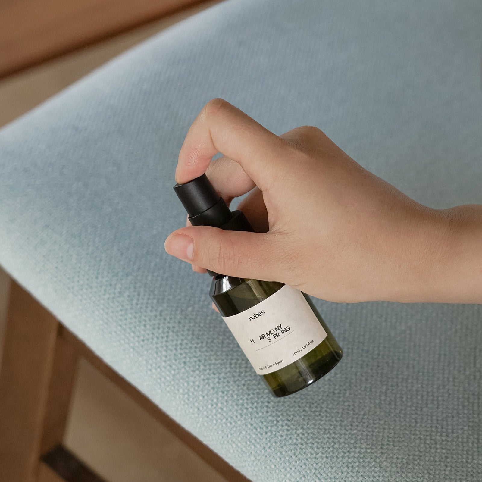 Mist onto fabric, space, and state of mind.